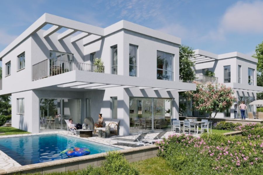 תכנון של 4 בתי מגורים עם בריכות שחיה פרטיות בשדרות קק"ל פרדס חנה .